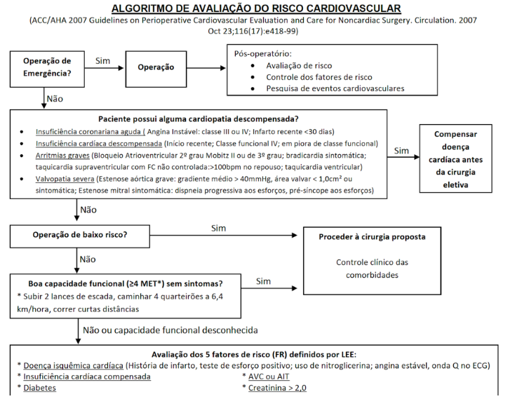 se cirurgia nao for baixo risco = ver METS! (>/= 4 opera = caminhadas curtas distancias com velocidade 6,4km/h)