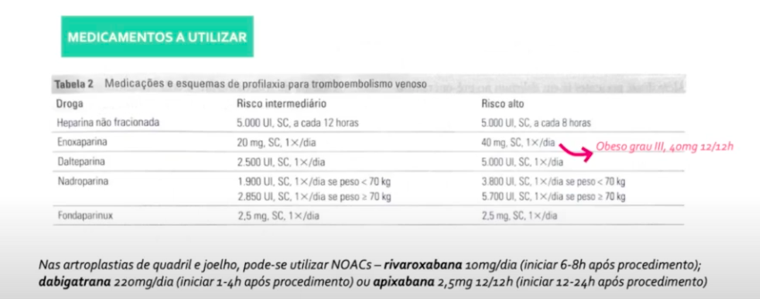 - >40: enoxa 40mg 2x ao dia ou HNF 7500 3x/dia
