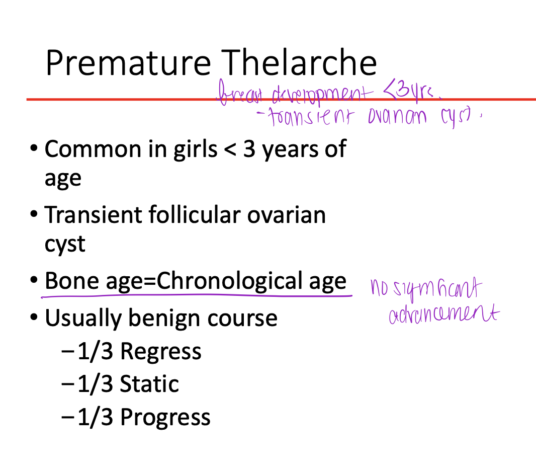 breast development in girls under 3 years, due to transient ovarian cyst.