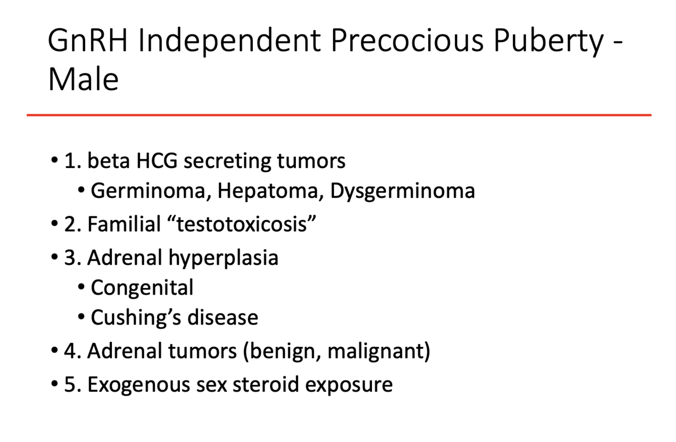 investigations to consider in a kid presenting as taller than their age and looking liek theyre going through puberty way too young.
