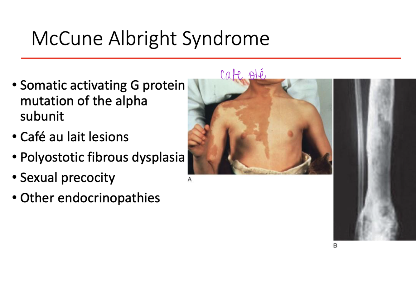 key dermatologic feature of mcCUne Albright syndrome. What happens to sexual characteristics in this disease?