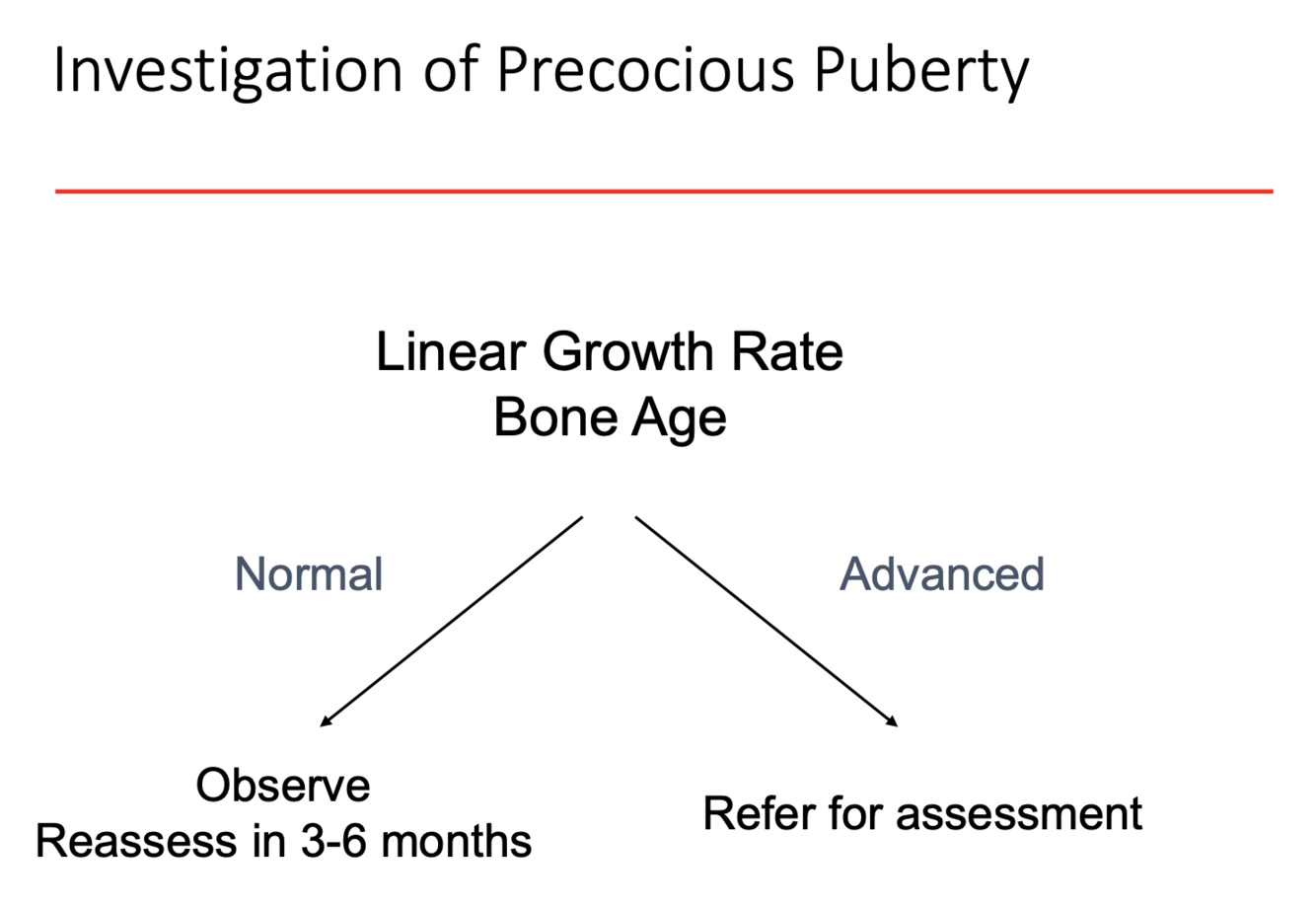 A kid presents with precocious puberty symptoms, you do a bone age and it’s normal. what do you do?