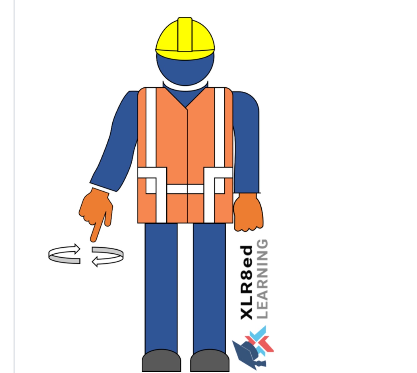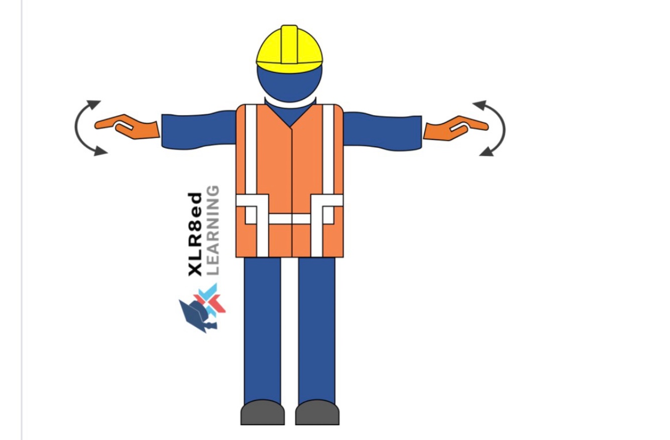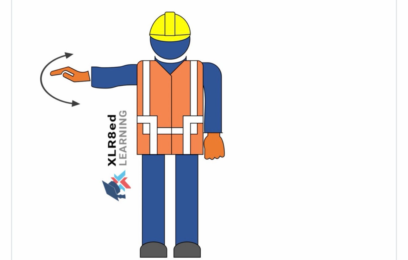 A crane signal person extends their arm downward with the forefinger pointing down moving in small horizontal circles.
