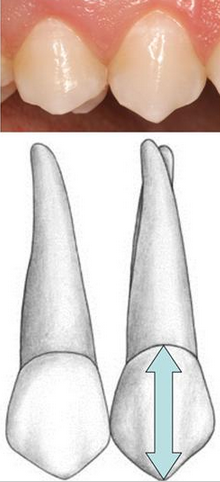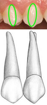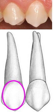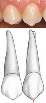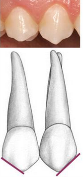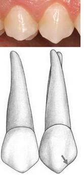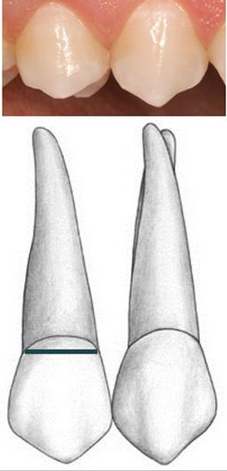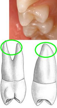 Greater mesial displacement of lingual cusp on maxillary 1st premolar