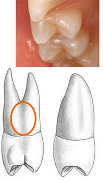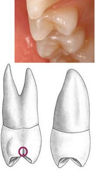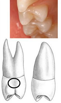 Present on maxillary 1st premolar (good place for bacteria deposit –> cavities)