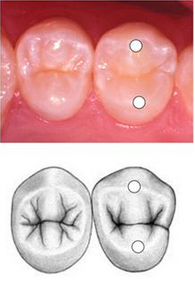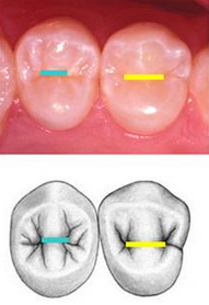 Maxillary occlusal view: mesio-buccal and disto-buccal line angles