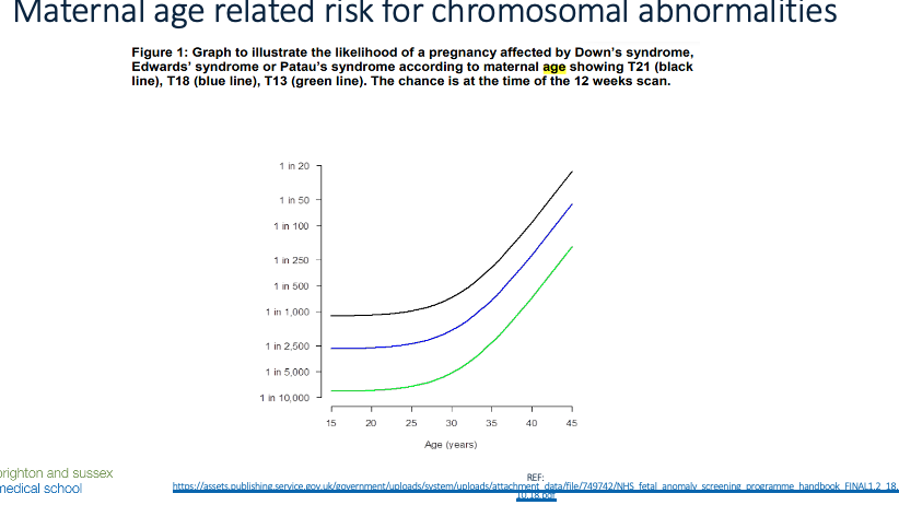 The chance of having a baby with a trisomy increases with maternal age.