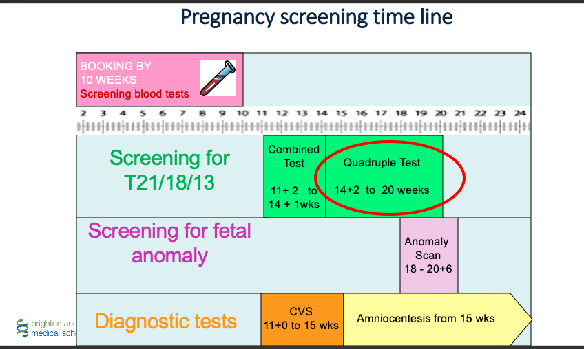 Second trimester maternal serum screening: quadruple test