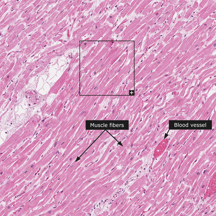 Glansstrimmor syns som tunna streck på muskelcellerna