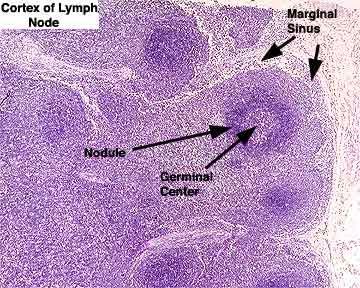 I cortex syns tätt packade lymfocyterala lymffoliklar
