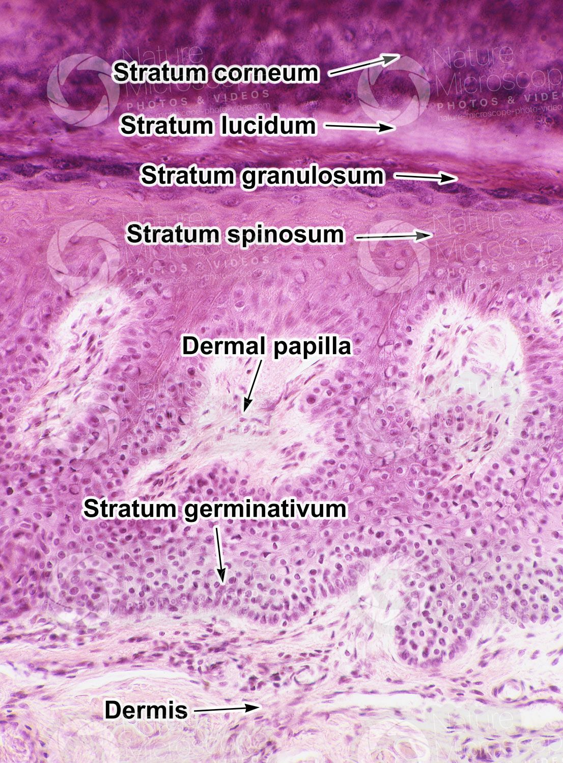 Stratum papillare – lucker bindväv med kärl och körtelgångar, kan ibland se Meissners nervändslut