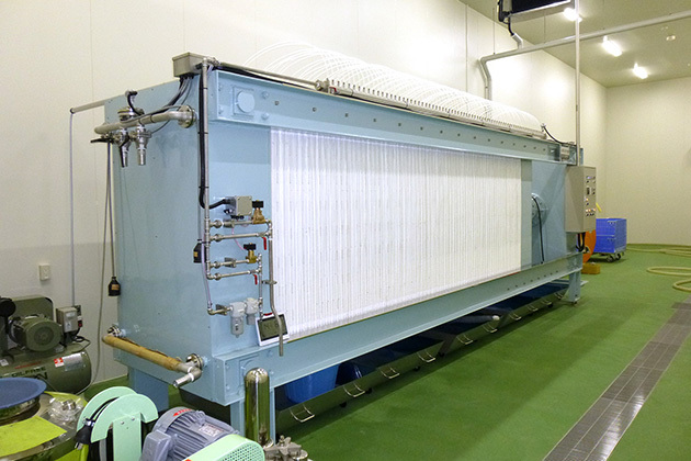 It removes the undissolved rice and yeast from the new sake.