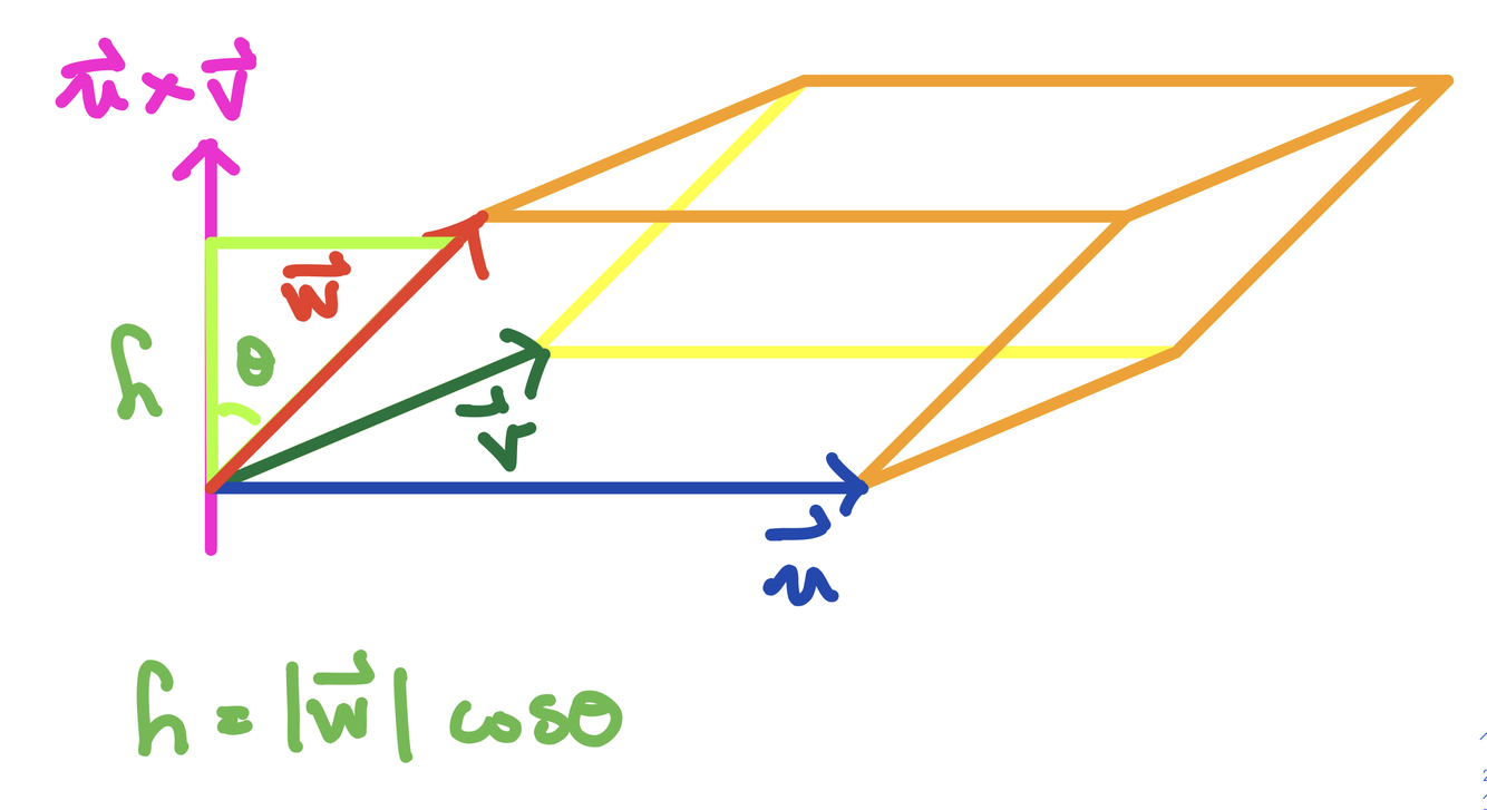 VParallelepiped = (u x v) · w = base x height,