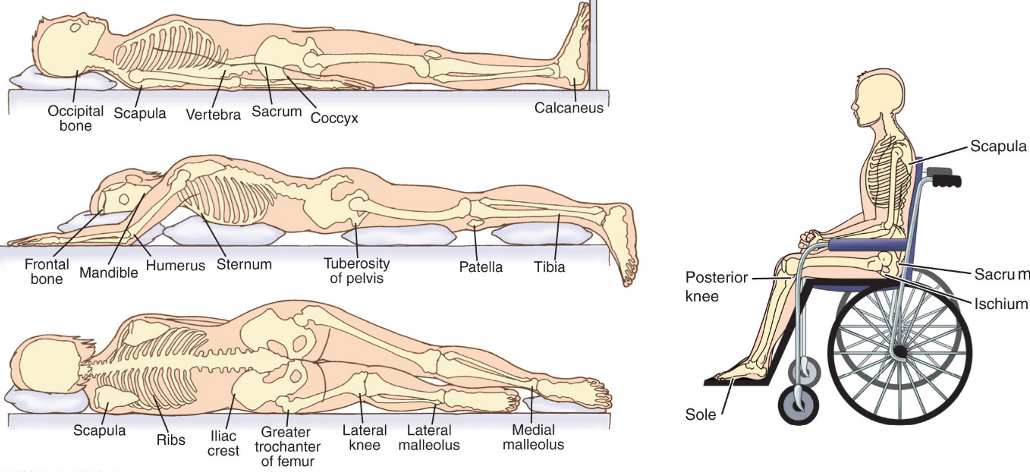 -pressure intensity (causes constriction of blood flow -> decreased O2 and nutrition to tissue -> tissue ischemia)