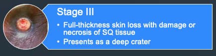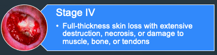-requires frequent dressing changes, pressure relieving surfaces and wound care