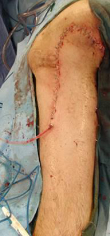 In all forms of the flap, the entire posterior thigh skin and fascia is elevated off the hamstring muscles (semitendinosus, semimembranosus, biceps femoris), thus severing all the musculocutaneous perforators from those muscles to the overlying skin and fascia. Therefore, the V-Y hamstring flap (a musculocutaneous flap) is not available after a posterior thigh flap has been raised. Though the inferior gluteal artery flap, gracilis, and possibly the tensor fascia lata flaps may be used, they are not the most appropriate surgical option when a re-rotation thigh flap is still available.