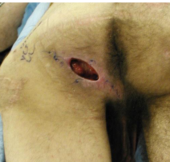 A systematic review of the literature was performed by Sameem et al., to determine the relative efficacy of musculocutaneous versus fasciocutaneous versus perforator flaps in the treatment of pressure ulcers. In their analysis, they concluded that all flaps had a significant recurrence and complication rate; however, there was no difference between the types of flaps used. Their paper did not specifically address the issue of how patients’ conditions were subsequently managed when they did develop a recurrence. This is important, because a key surgical strategy is to consider the need for subsequent surgical procedures; in fact, perhaps more critical than the composition of the flap and the nature of its blood supply is the design of the flap and where the incisions are planned. A fundamental principle in surgical management of pressure ulcers is being able to provide healthy vascularized tissue into the wound bed and to completely obliterate dead space. Furthermore, the flap should be designed such that if a recurrence develops, the patient continues to have surgical options available, such as re-advancement or re-rotation of the prior flap(s).