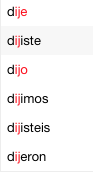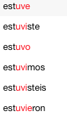 preferi preferiste !prefirió! preferimos preferisteis !prefirieron!