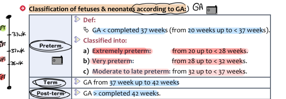 Classification of fetuses & neonates according to GA