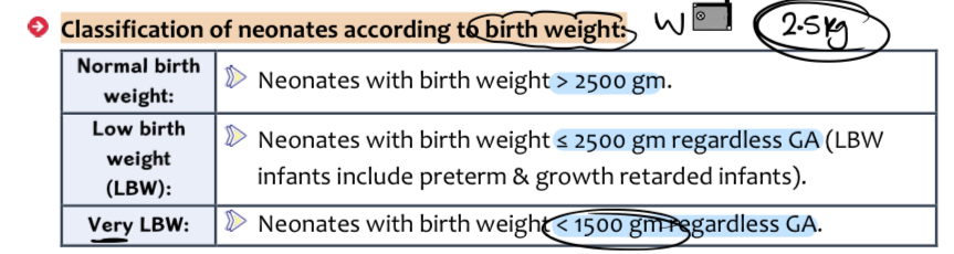 Classification of neonates according to birth weight