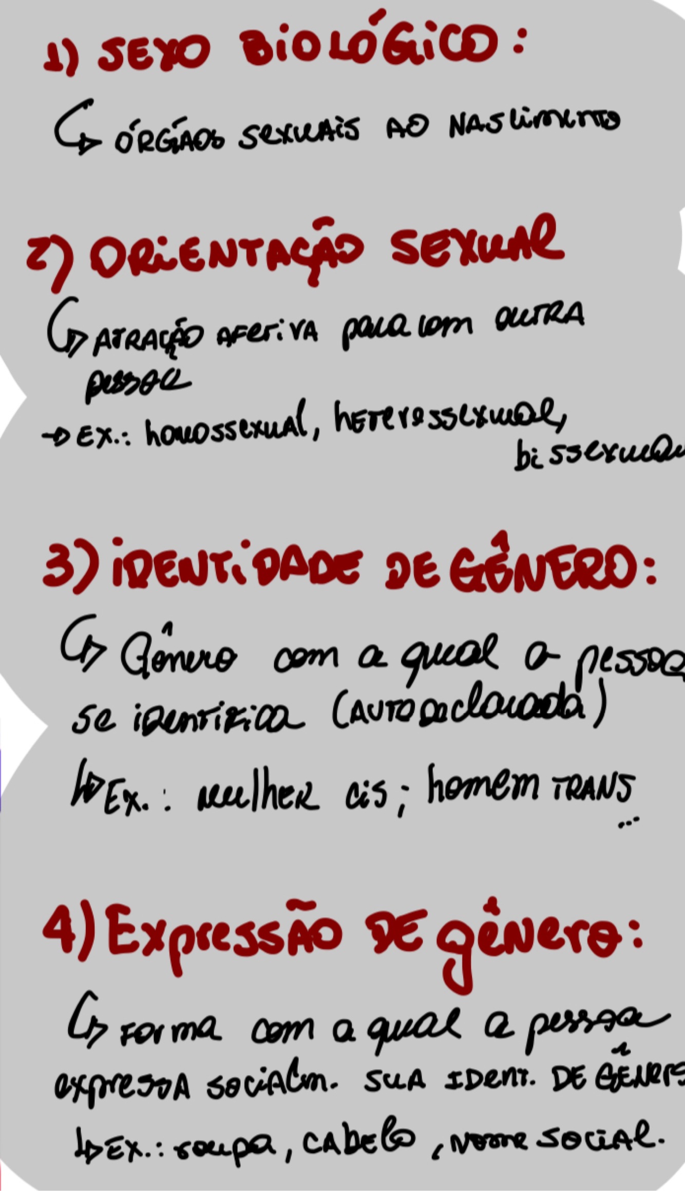 Diferencie: sexo biologico, orientação sexual, identidade de genero, expressao de genero.