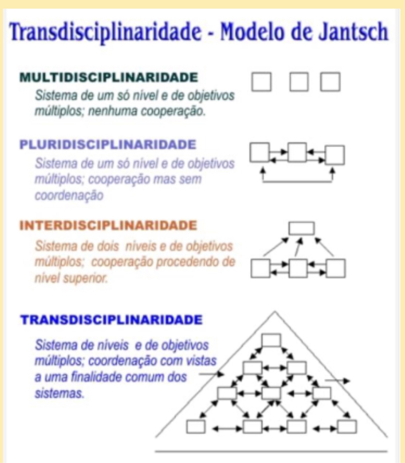 Quais os modelos de disciplinaridade de acordo com Jantsch?