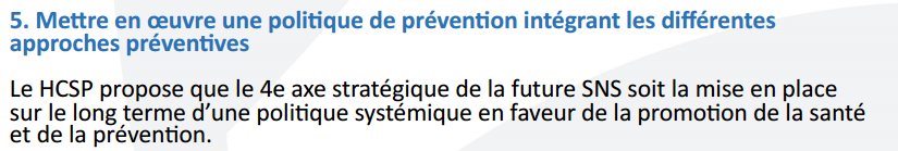 1) mettre en place une politique de promotion de la santé, incluant la prévention, dans tous les milieux