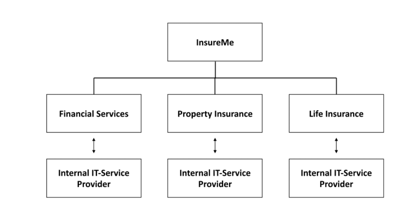 From the lecture, you know different types of IT organizations. Please name InsureMe’s IT organization type and explain the organization type’s characteristics. Further, name one advantage and one disadvantage for this IT organization type.
