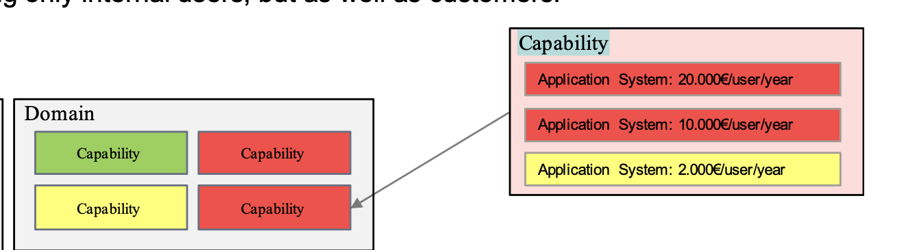 Identify inefficient capabilities by checking each application’s costs against user count . You can use internal users but also customers.