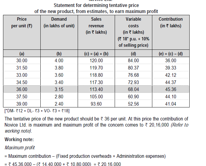 CALCULATE CONTRIBUTION AT DIFFERENT DEMAND LEVELS AND SELECT THE PRICE WITH HIGHEST CONTRIBUTION