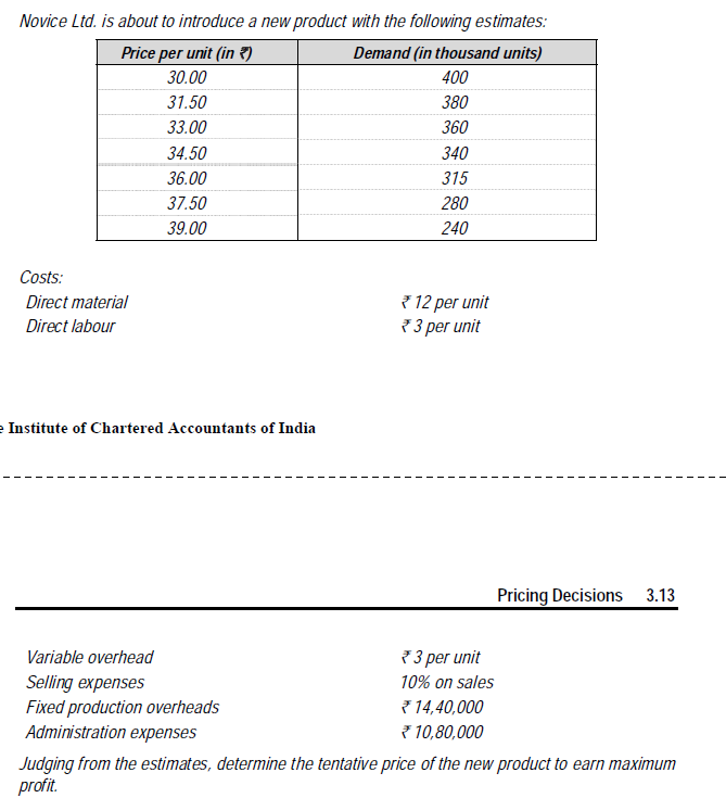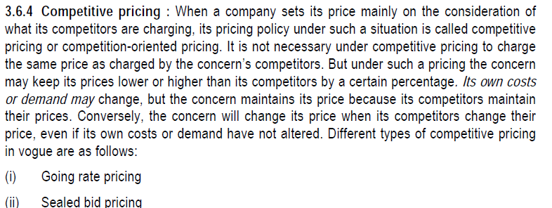 Pricing decisions=>>>Org Goals>may be max. profit/sales/optimal utilization of resources.