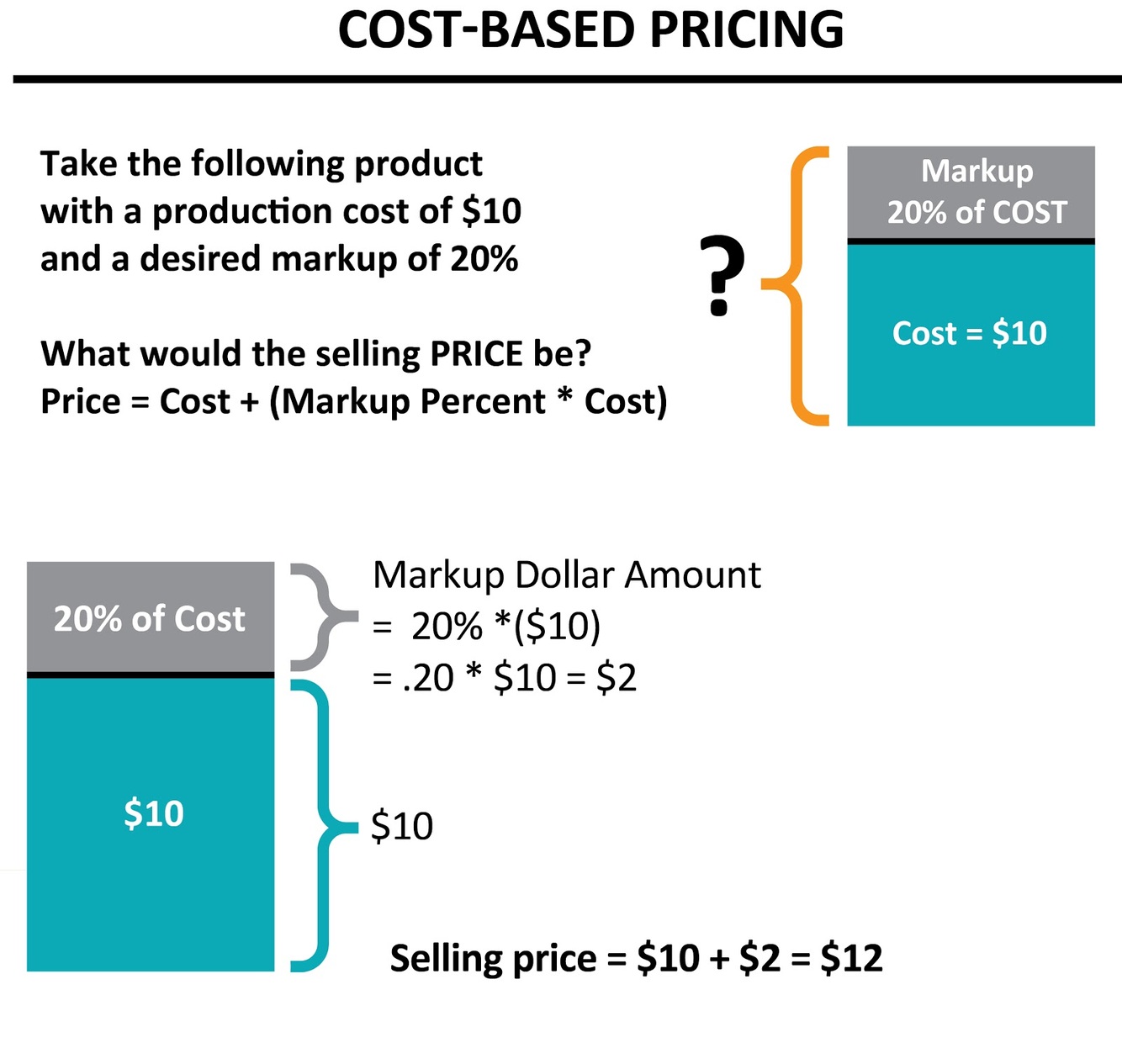 Let’s assume a product cost of $10 and a desired markup of 20%. From this information, we would calculate the final price of the product using the formula…