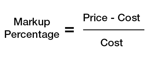 Markup percentage = (Price - cost) / cost