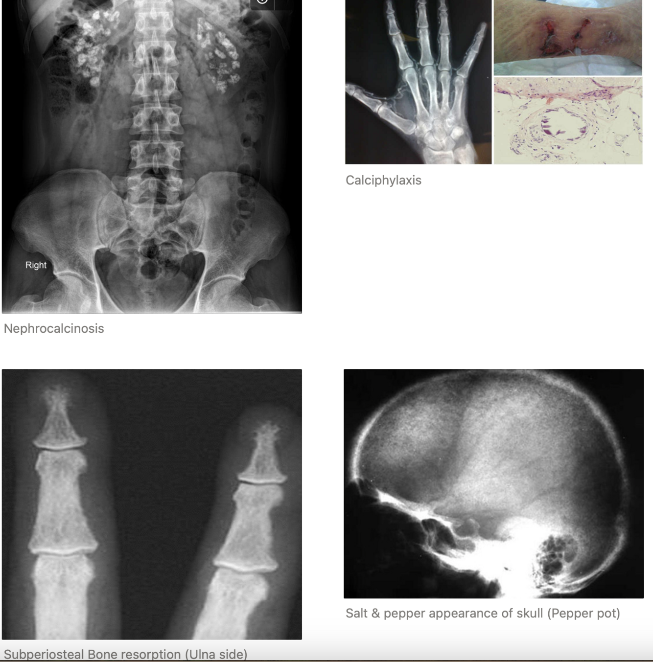 X-ray - Hands, Clavicle & Skull: look for resorption signs & cystic formation, punched out skull lesion. Pelvis to screen for silent nephrolithiasis or nephrocalcinosis.
