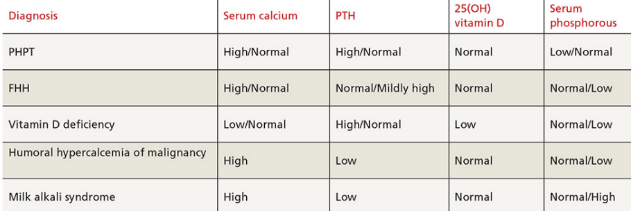 Differential diagnosis for hypercalcaemia