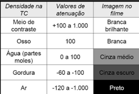 ou seja, o padrão de densidades segue o mesmo da radiográfia