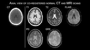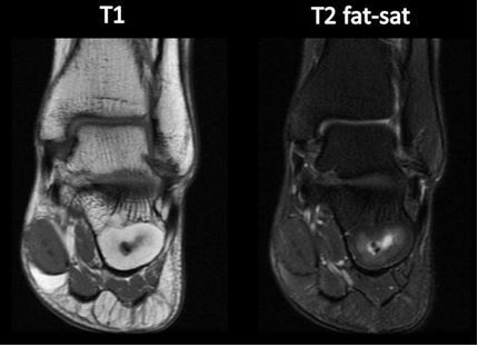 T2 (TR e TE altos⇒bom para patologias como edema, pois vê água branca)