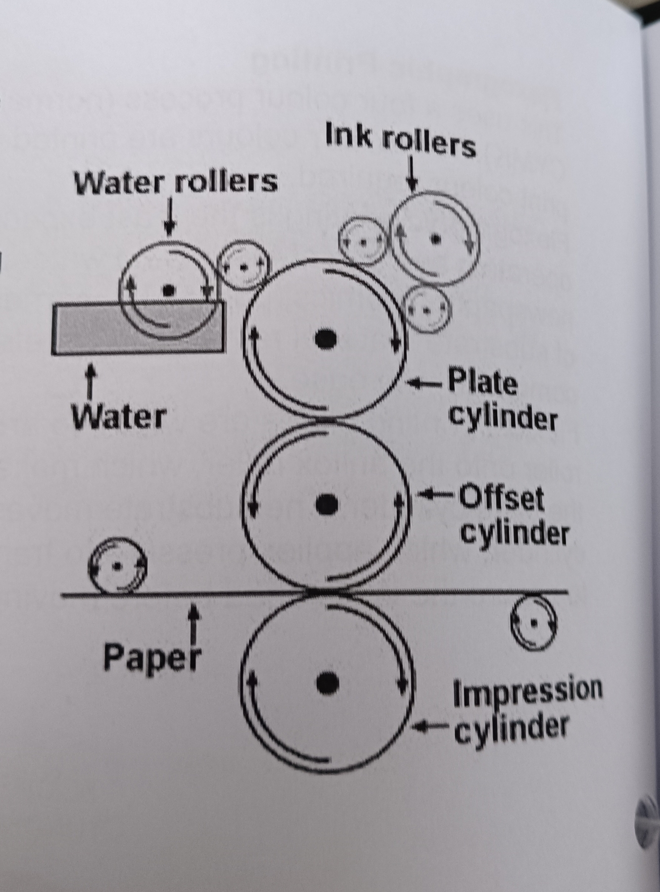 3) this is transferred to the plate cylinder and impression cylinder which applies pressure to transfer the image