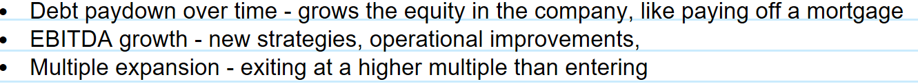 What are the main levers that drive returns in an LBO?