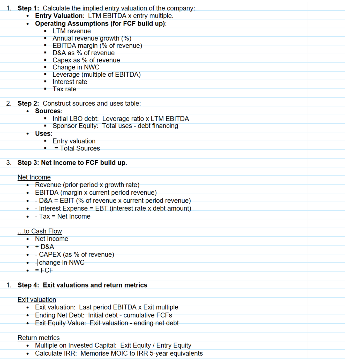 Walk me through a paper LBO