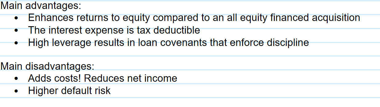 What are the advantages and disadvantages of high leverage in an LBO?