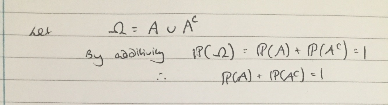 Prove that P(A) + P(Ac) = 1
