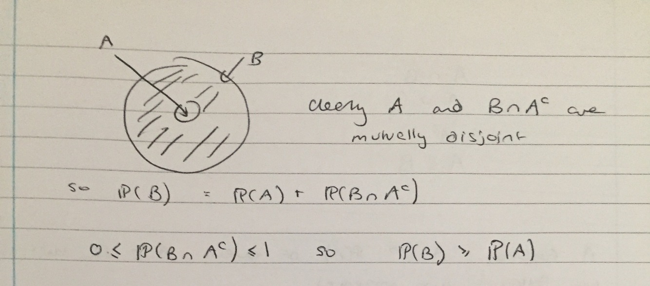 Prove the relationship between P(A) and P(B) if A is a subset of B