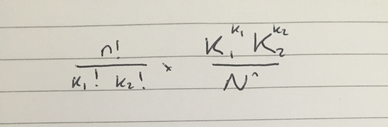 Suppose a population of size N=K1 + K2 contains K1 individuals of type 1 and K2 individuals of type 2. If sample of size n is drawn with replacement from this population it contains k1 individuals of type 1 and k2 individuals of type 2. Whats the probability