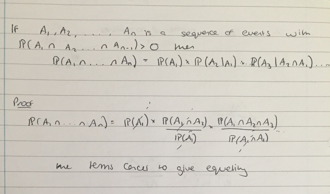 State and Prove the multiplication rule for conditional probabilities
