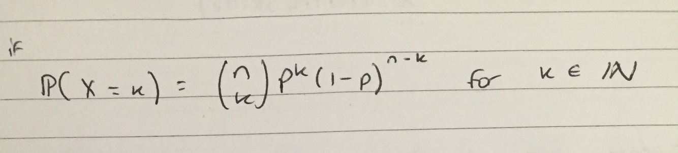 When does a random variable X have the binomial distribution with parameters n and p