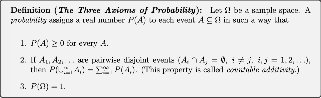 Generally define P(A) where A ⊆ Ω and the probability of each event in the sample space is equal