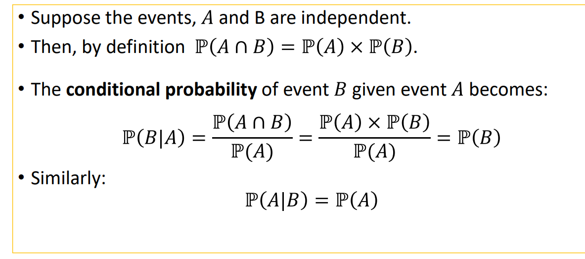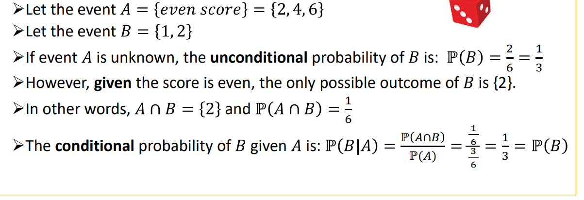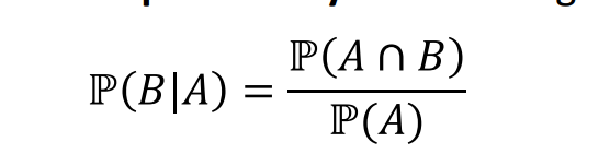 The conditional probability of an event B is the probability that the event will occur given the knowledge that an event A has already occurred