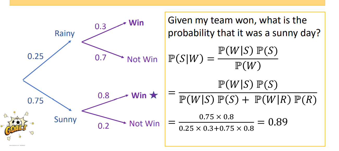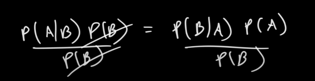 We know the probability of P( A given B) and we know the P ( B given A) using conditional probability, rearrange this to find bayes theroem?