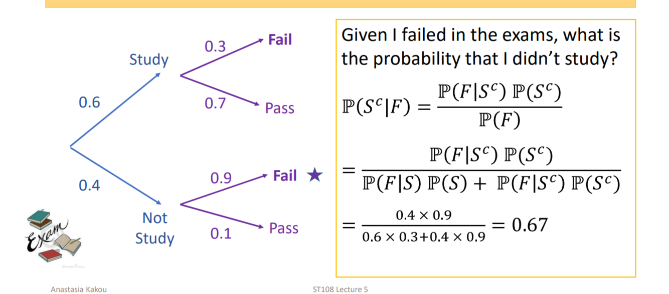 Given the probability that i failed my exams, what is the probability that i didnt study?